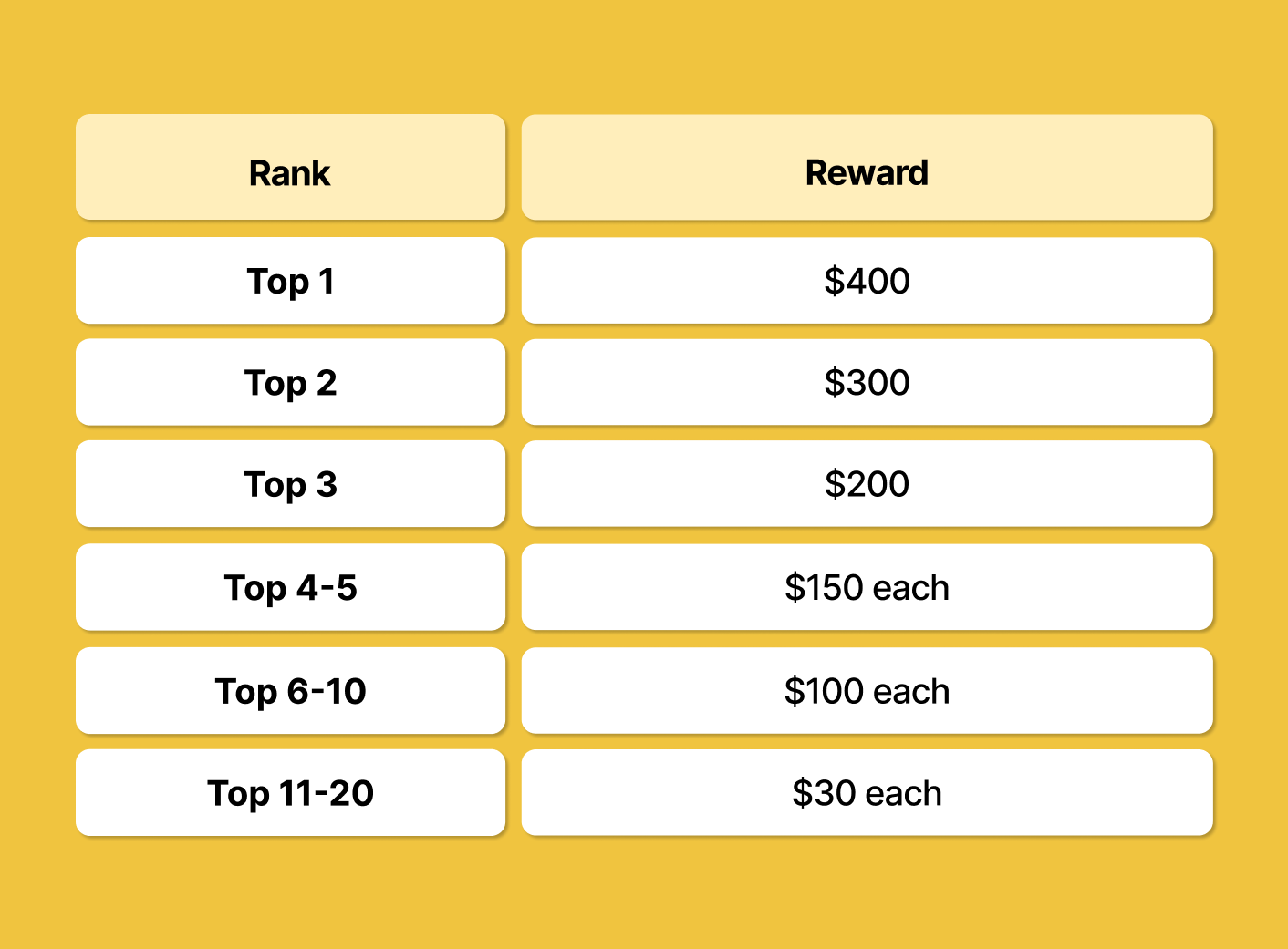 Top Invite+ rewards are distributed from a fixed prize pool of $2,000 USDC, allocated to the Top 20 users based on their final Invite+ ranking during the campaign period.