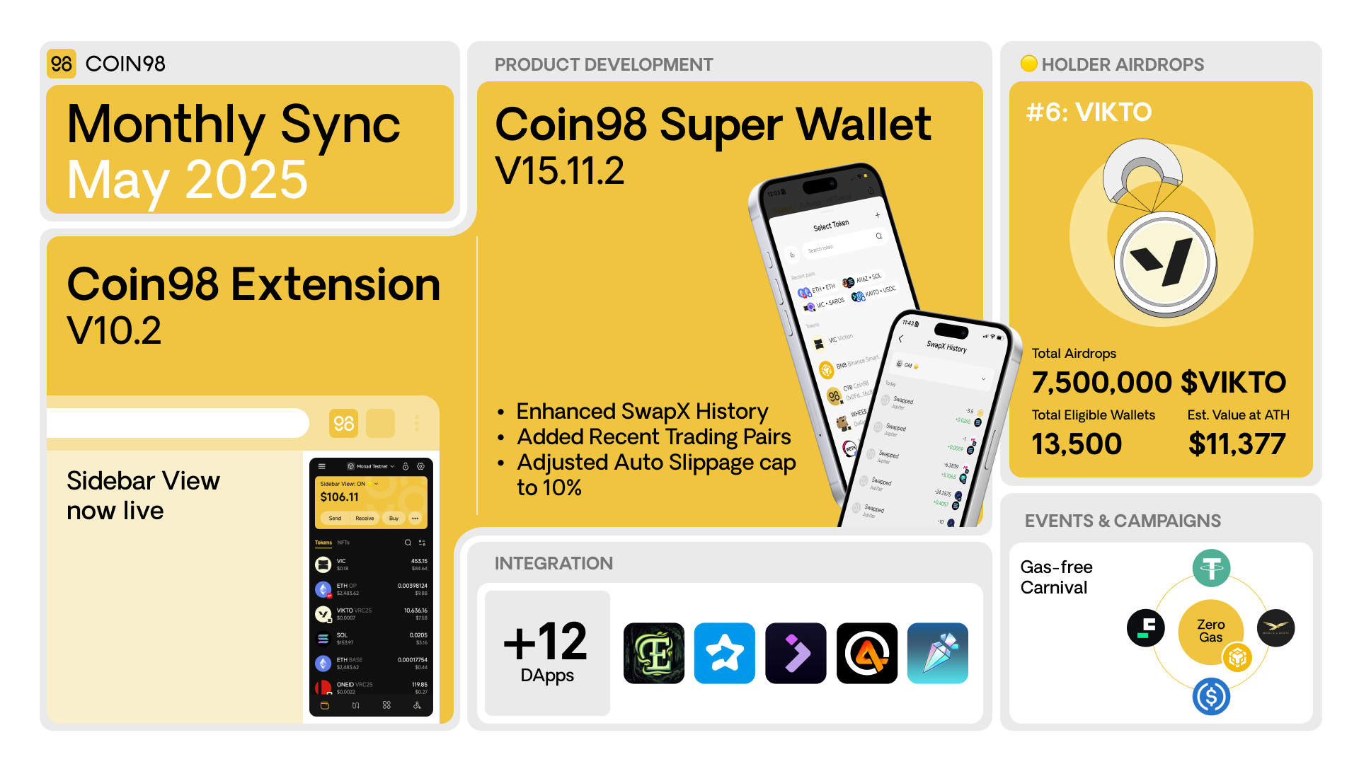 Following the April improvements, May focused on refining the trading experience and boosting wallet performance. From SwapX upgrades to Coin98 Extension enhancements, every update is a step toward a faster and smoother Web3 experience.